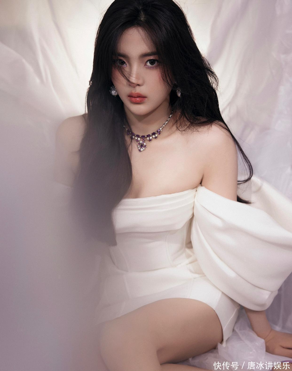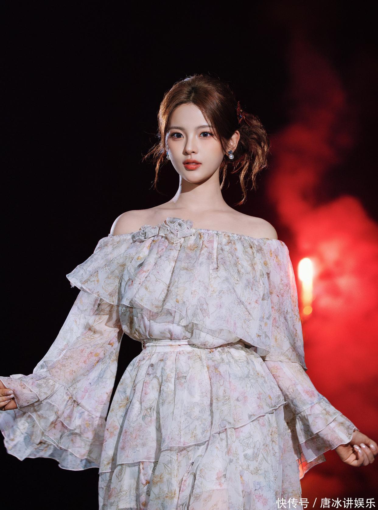 争议贯穿了她的上升期:早期被嘲“划水”“土气”,尝试黑丝造型时遭遇“甜妹硬凹御姐”的质疑;但也有观众从她满手针眼的过往与练舞淤青的膝盖中,读出了造型背后的倔强。这种“不完美”反而让她的纯欲风更具层次——懵懂落泪的脆弱感强化了“纯”的共情力,而直面争议的倔强又为“欲”感增添了力量内核,打破了纯欲风流于表面的甜腻感。