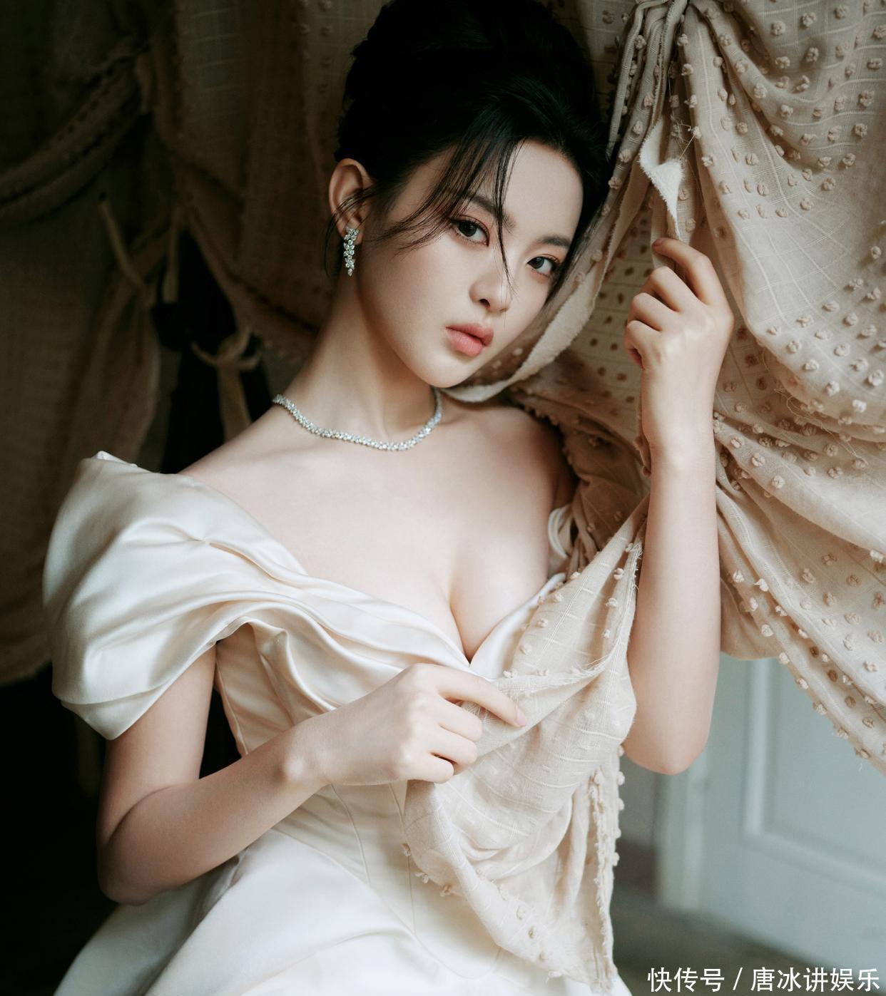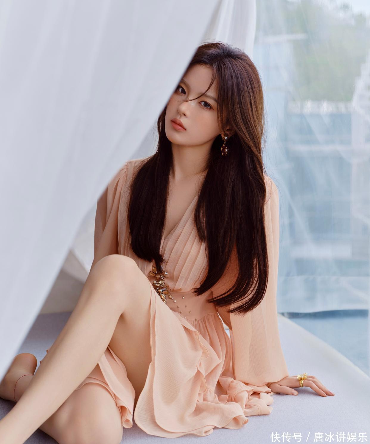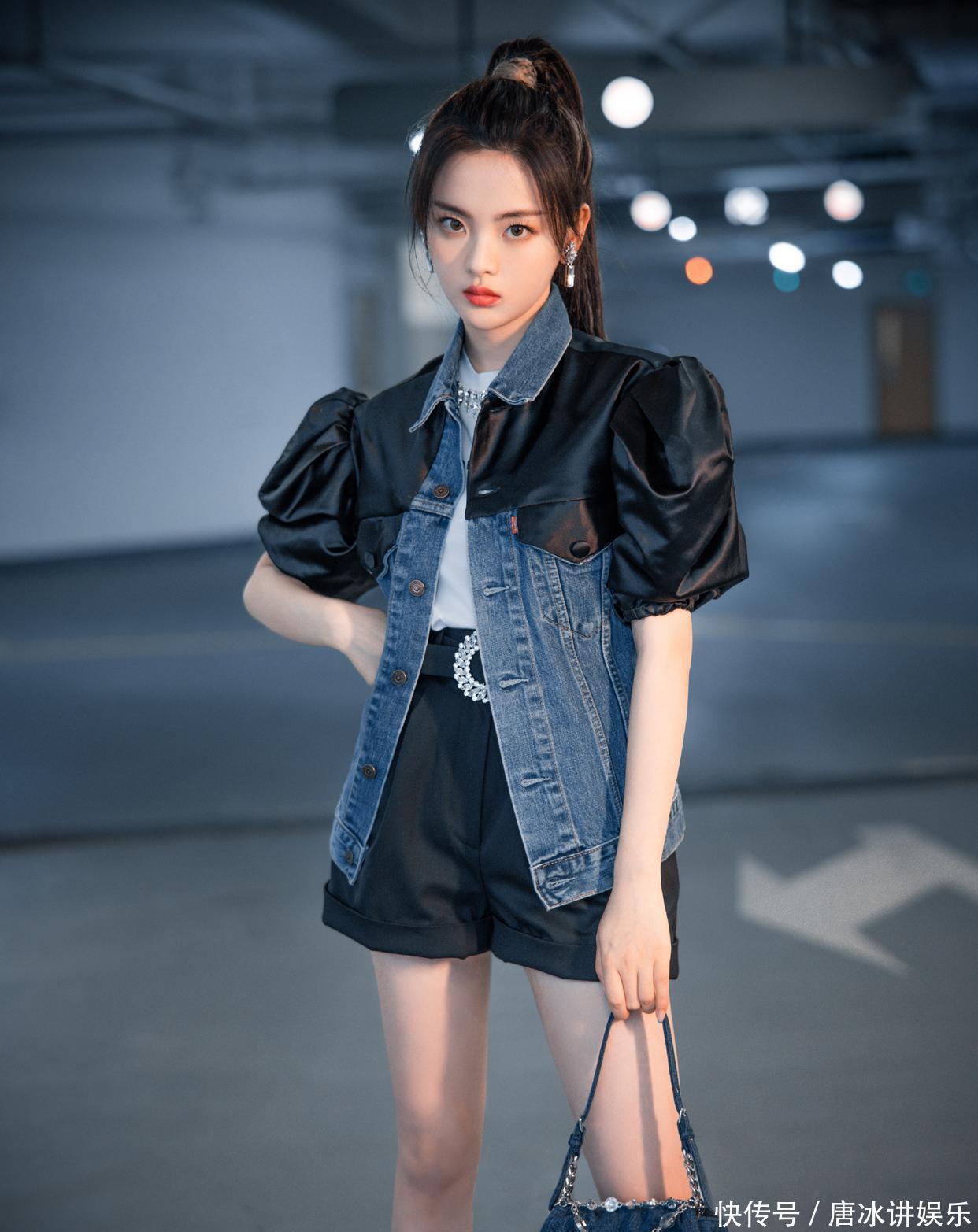 这种反差在造型中被极致放大:巴黎时装周上,她以斜肩亮片黑裙搭配10D雾面黑丝,戏曲眼线与烟熏妆碰撞出东西方美学张力,将少女感与凌厉感揉碎重组;日常造型中,短款上衣露腰线的甜酷风与古风薄纱的温婉感切换自如,印证了身材作为“百变画布”的风格适配性。这种先天条件与后天自律的结合,让她的纯欲风既有灵气又有底气。
